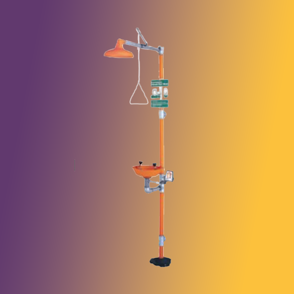 - Eye Wash is activated by a flag handle, two GS-Plus spray heads deliver a flood of water for rinsing eyes